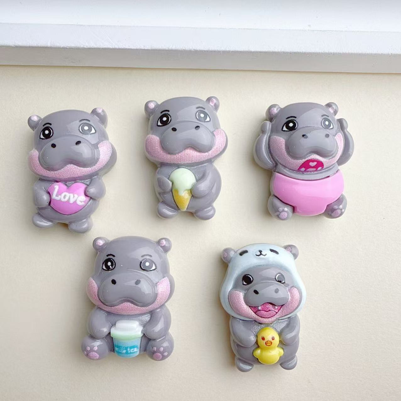 かわいいネットの赤いかわいいぼうっとしている小河馬の明るい顔の樹脂の部品の手作りのdiyのアクセサリのヘアピンのロープの水杯の材料