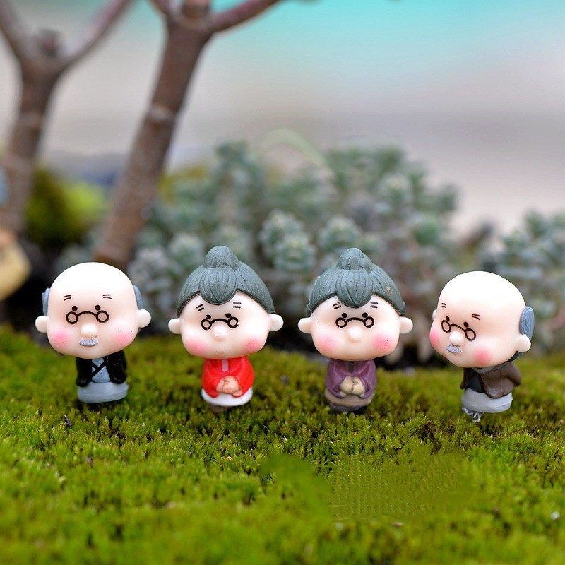 ブラインドボックス微景観盆栽多肉ケーキ装飾置物おじいさんとおばあさんのカップルのプラスチック工芸置物