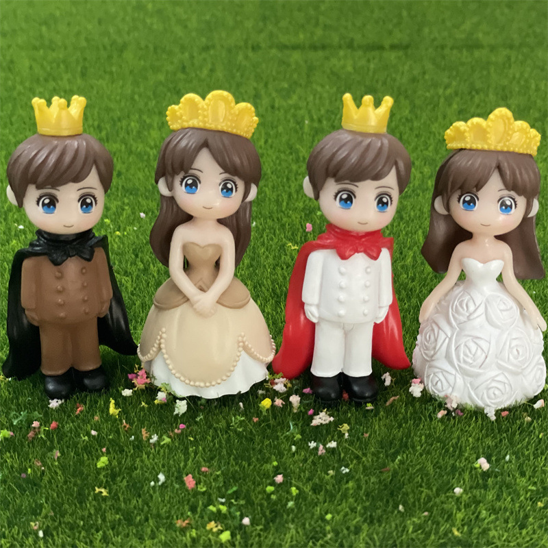 コケの小さい景観の王女の王子のカップルの人物は車のケーキの装飾のキーホルダーのブラインドの箱の部品を並べます。