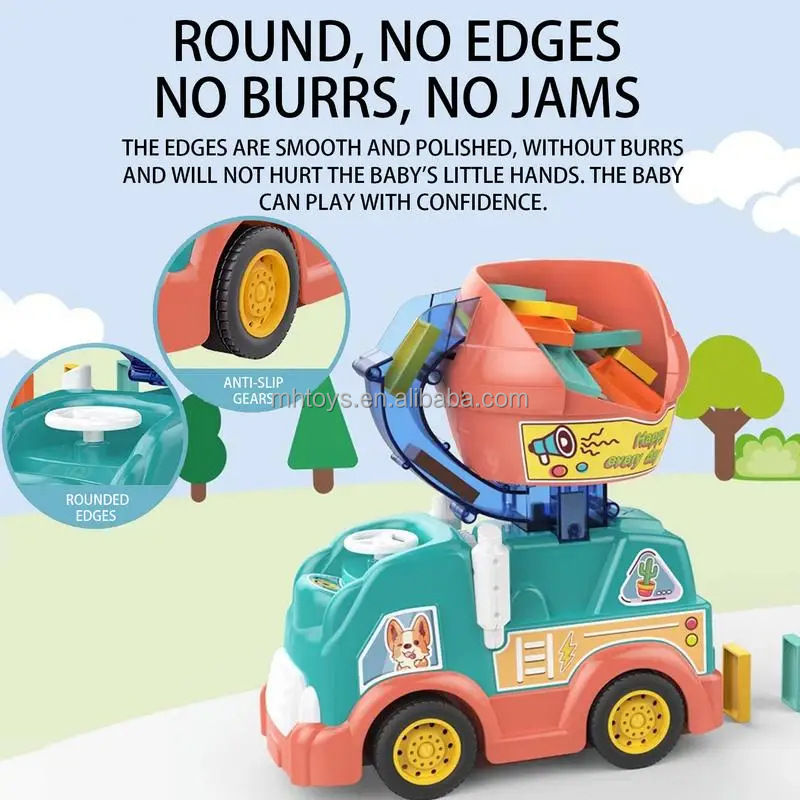 クロスボーダーDIY子供のおもちゃの車のドミノは自動的に札を放して小さい列車の電動の音の光の益智をスプレーします。