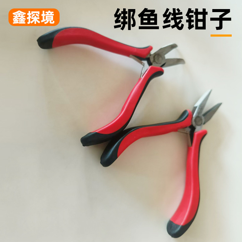 釣り糸の先の口のペンチの平口の曲がった口を縛って釣りをします。
