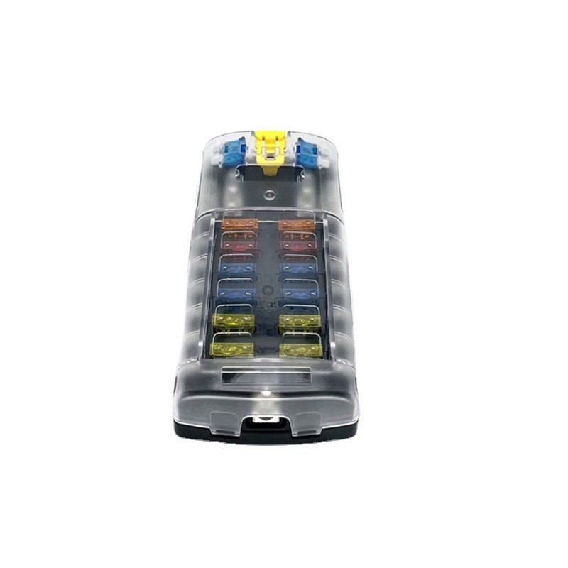 自動車12路保険箱にはロック付き透明絶縁カバーとシール付きヒューズが入っています。