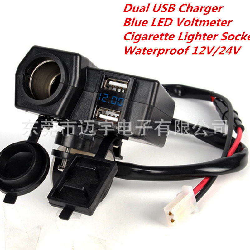 車船通用部品USB加電圧計デジタル表示USB車充電圧計二合一車充HY
