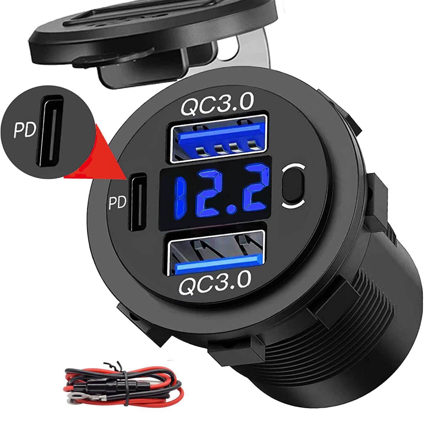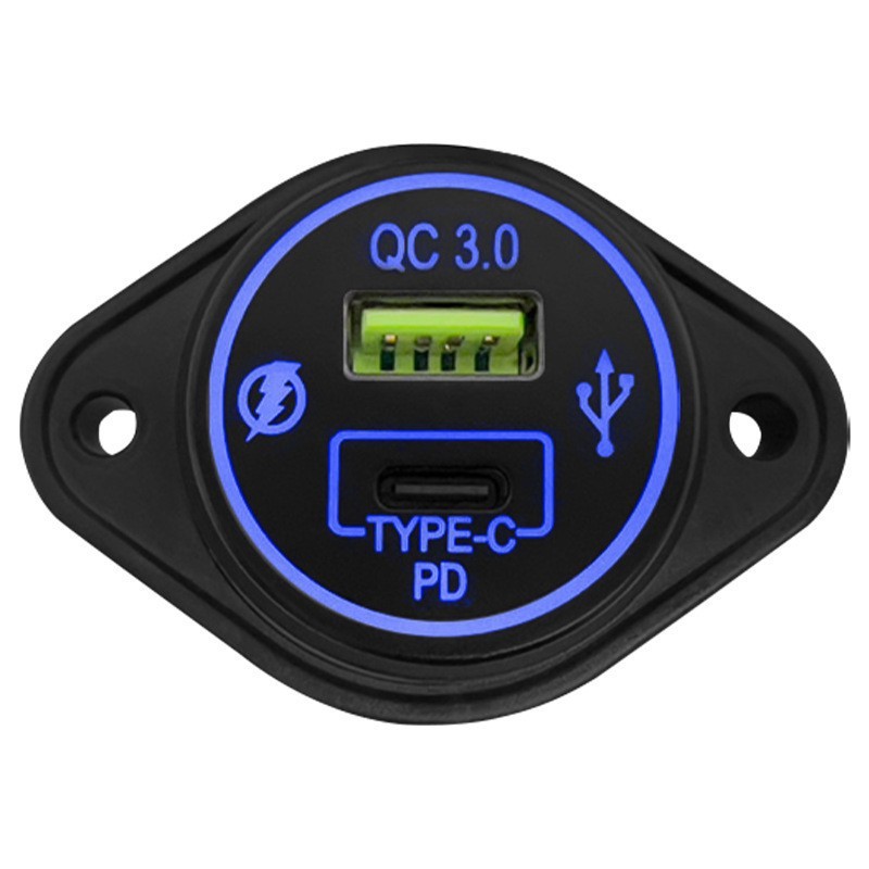 DC12-24V新型自動車ヨット改造車充電QC3.0 TYPECダブル車充電器LEDブルーライト