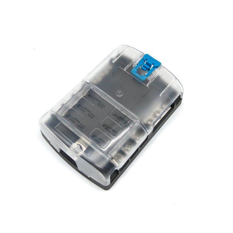 6路正負極自動車ヒューズボックス1入6出負極保険ボックス付きライトなしブルーロック付DC32V