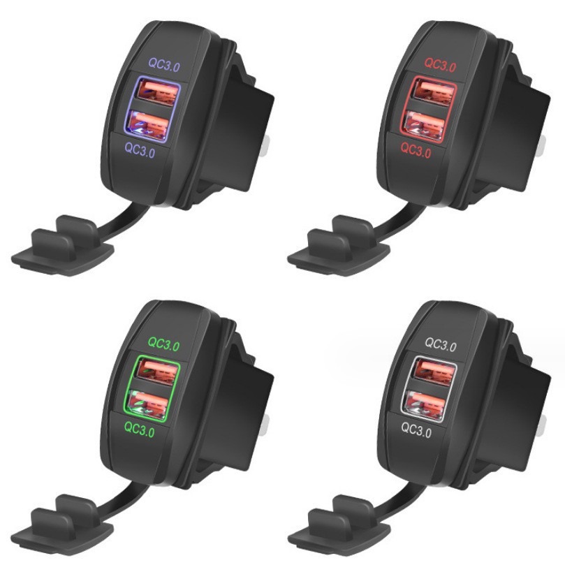 ダブルQC3.0急速充電車載USB角形充電器改造船型高速3.0充電車充電赤青緑灯