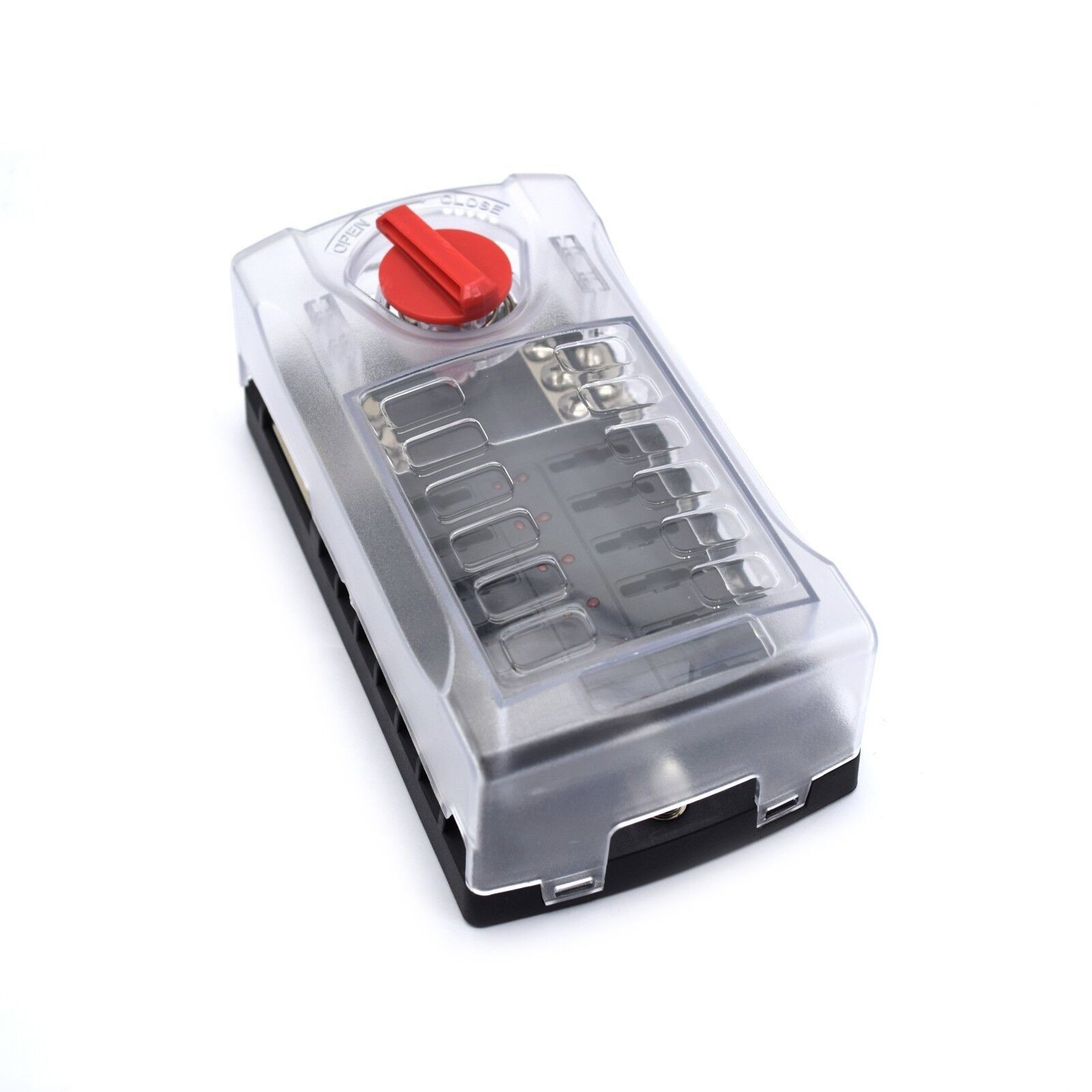 12路正負極自動車ヒューズボックス防塵カバー赤色回転スイッチ付き保険ボックスランプ付き保険ボックス