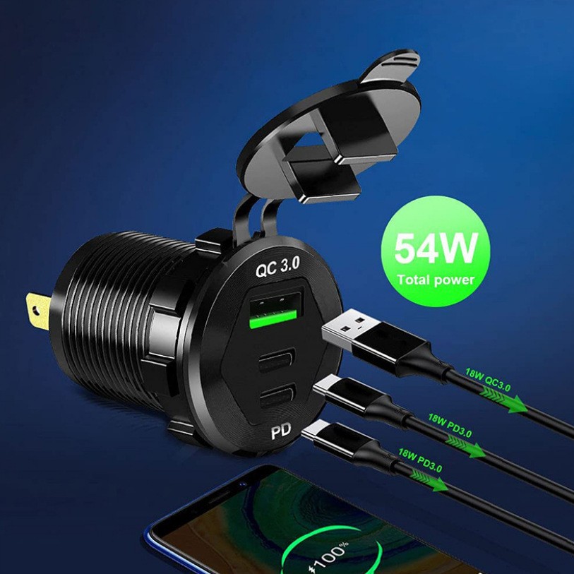 車船改造新製品QC3.0ダブルPDフラッシュ充電3口USB車充電TYPE-C充電PD充電器