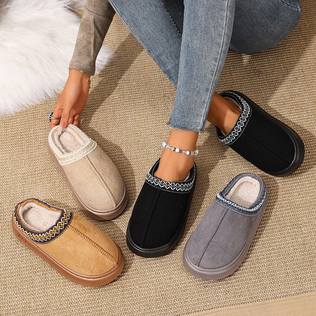 クロスボーダーオープンクロスウールスリッパレディース室内滑り止めレディースホームスリッパ四季士おしゃれ高级感