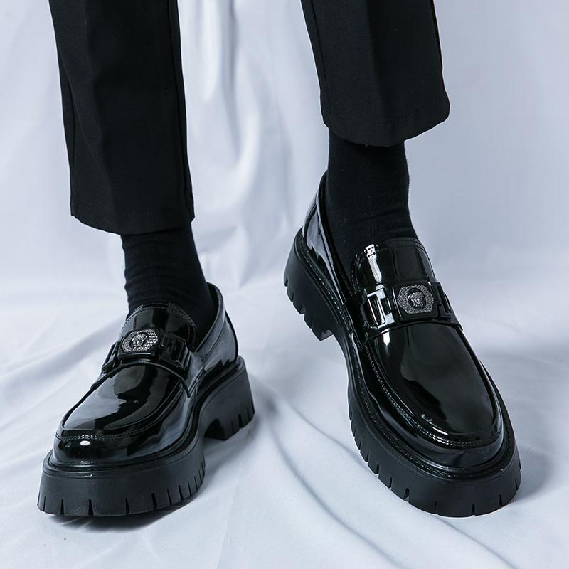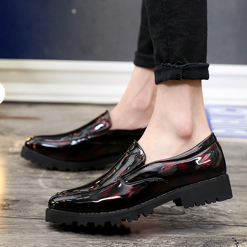 2025 メンズトレンディなナイトクラブファッション紳士靴若者英国カジュアル韓国スタイル理容師ポインテッドトゥパテントレザーシューズ