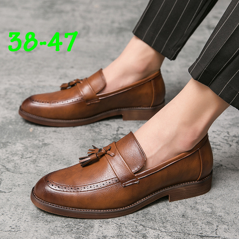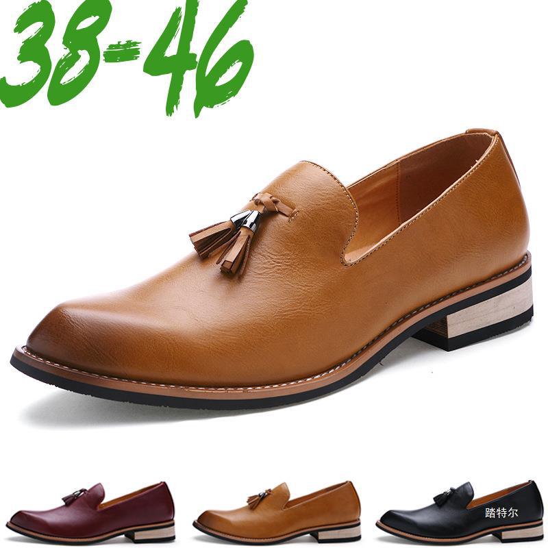 韓国版クロスボーダー AliExpress 大きいサイズの尖った革靴メンズスリッポンタッセル英国スタイルの小さな革靴メンズファッション