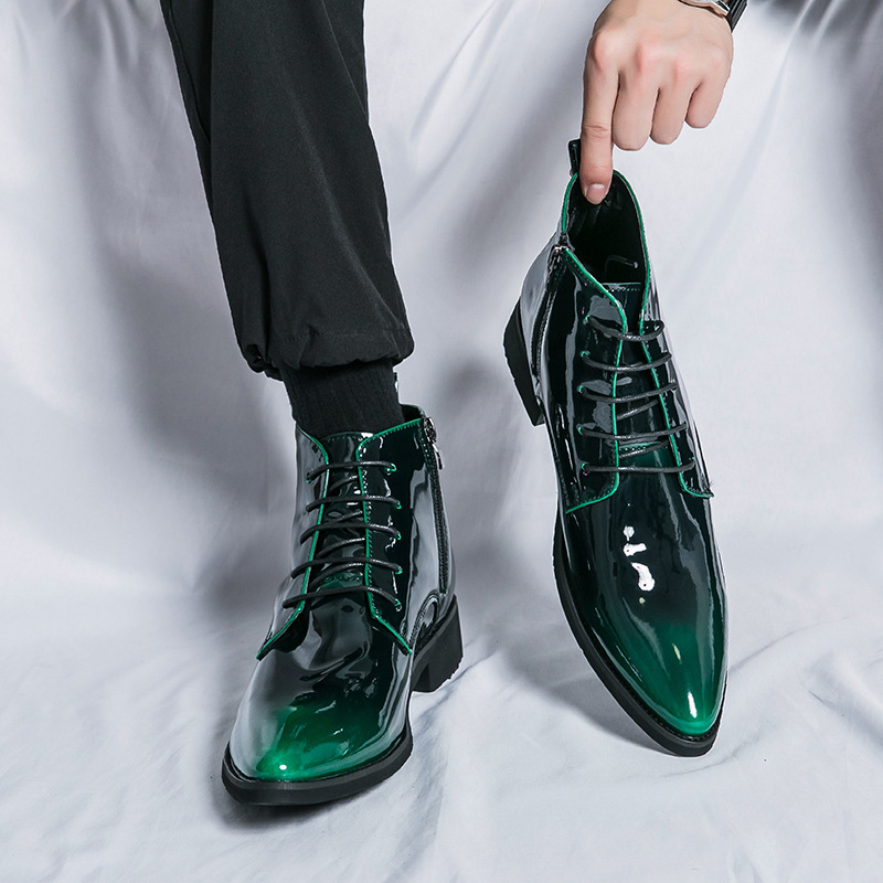 2025 ハイカットポインテッドトゥレザーシューズ パテントレザー 光沢 38-47 サイズ メンズ ポインテッドトゥ ハンサム パテントレザー 光沢 ハイカット レザーブーツ メンズ