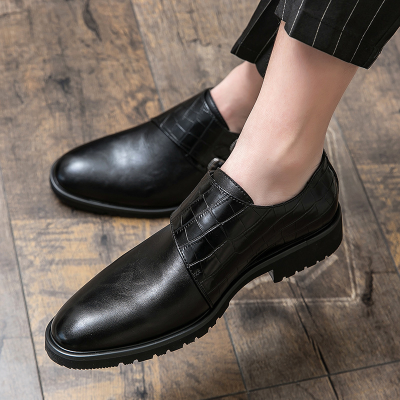 レザー英国風バックル革靴メンズユーストレンド身長アップビジネスフォーマル紳士靴韓国レザー