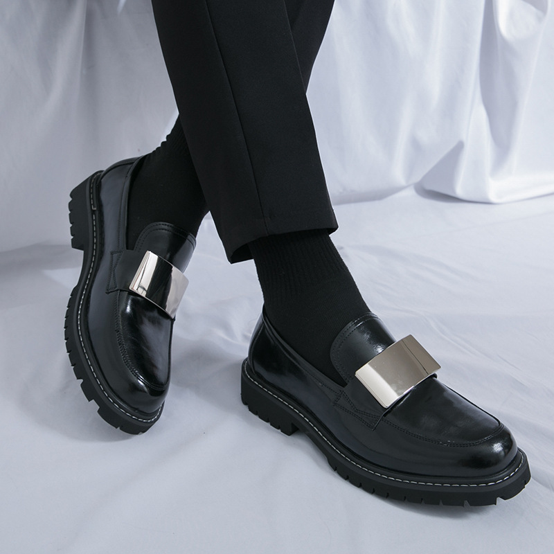 クロスボーダープラスサイズメンズ厚底ローファー2025春秋新作光沢のあるメタルビジネス紳士ビジネス革靴男性用