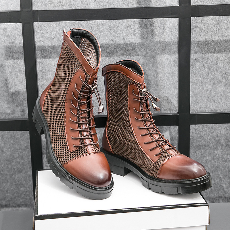 人気のメンズ中空マーティンブーツ、薄型夏クロスボーダーサンダル、ファッショナブルな英国スタイルのシングルブーツ