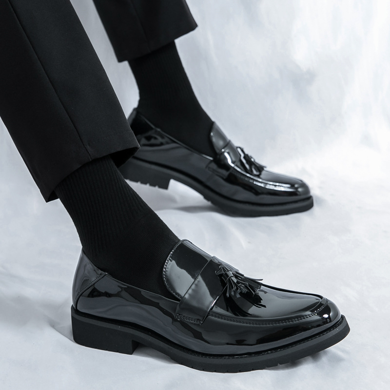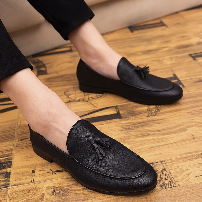 メンズ大きいサイズ韓国風ビジネスタッセルスモールレザーシューズ貿易ファッションブラックスリッポンローファーレザーシューズ