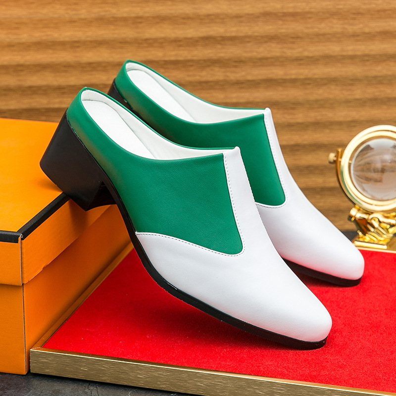 レザークロスボーダーラージサイズメンズ厚底ハーフスリップレザーシューズ外国貿易夏新作英国ナイトクラブレザーシューズヨーロッパ
