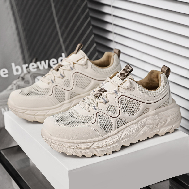 2025 春の新作メッシュカジュアルトレンディなソフトソールダッドシューズメンズポップコーン厚底スポーツランニングシューズ男性用