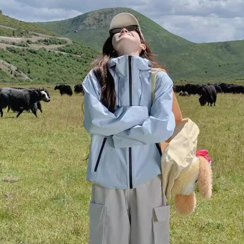 アウトドアカジュアルワークウェアジャケット2025秋韓国版無地フード付き長袖ジャケットゆったりトレンドクールジャケット