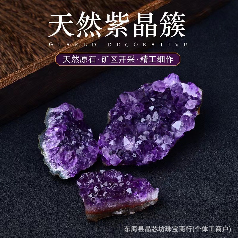 天然水晶原鉱標本紫水晶クラスター置物晶洞片原鉱標本消磁石招財聚宝盆