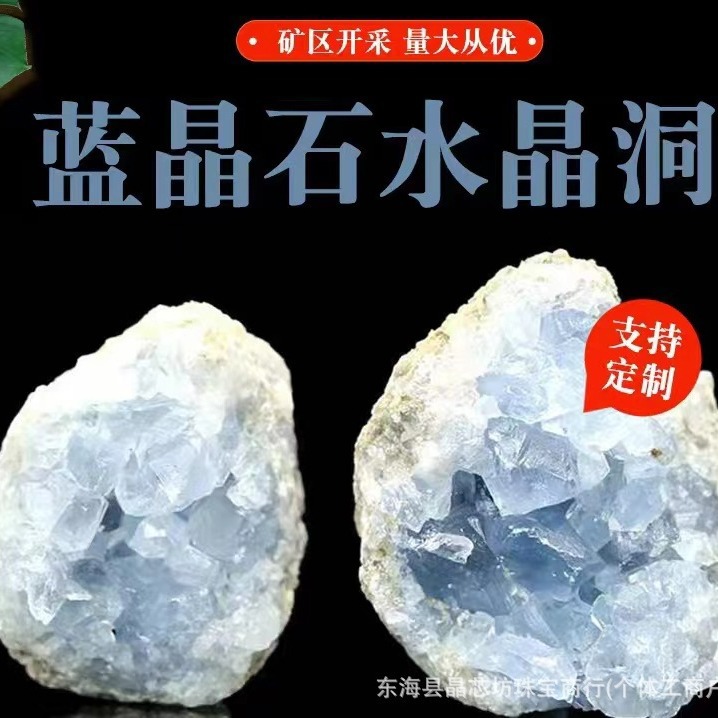 天然水晶原石藍晶洞天藍晶石砂利藍水晶洞聚宝盆置物教学鉱物標本