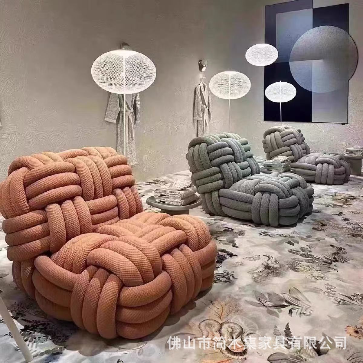 インターネットセレブクリエイティブ織りロープノットライト高級ソファホームリビングルームベッドルームバルコニーシングル特殊形状レジャーソファ