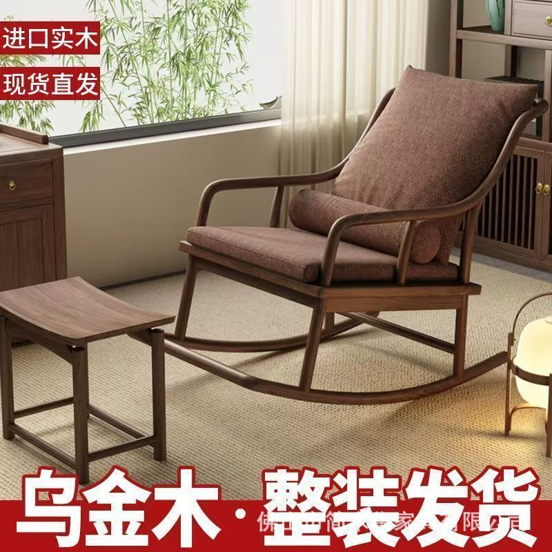 ウッディウッドロッキングリクライニングチェア無垢材新中国風ソファ怠惰な椅子バルコニーリビングルームホームシングルレジャーチェア