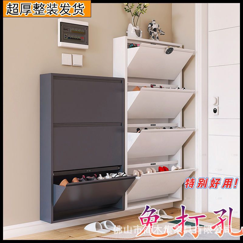 玄関ホールの家庭用ドアに設置された15cmの超薄型靴キャビネット、スチール製の大容量靴ラック、超狭い靴キャビネット、壁掛け式ダンプキャビネット