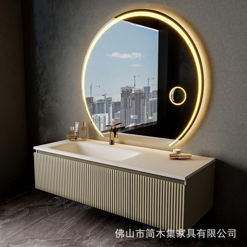 モダンでシンプルな無垢材のバスルームキャビネット、スレート一体型洗面台、洗面台、スマート洗面台、セラミック洗面台
