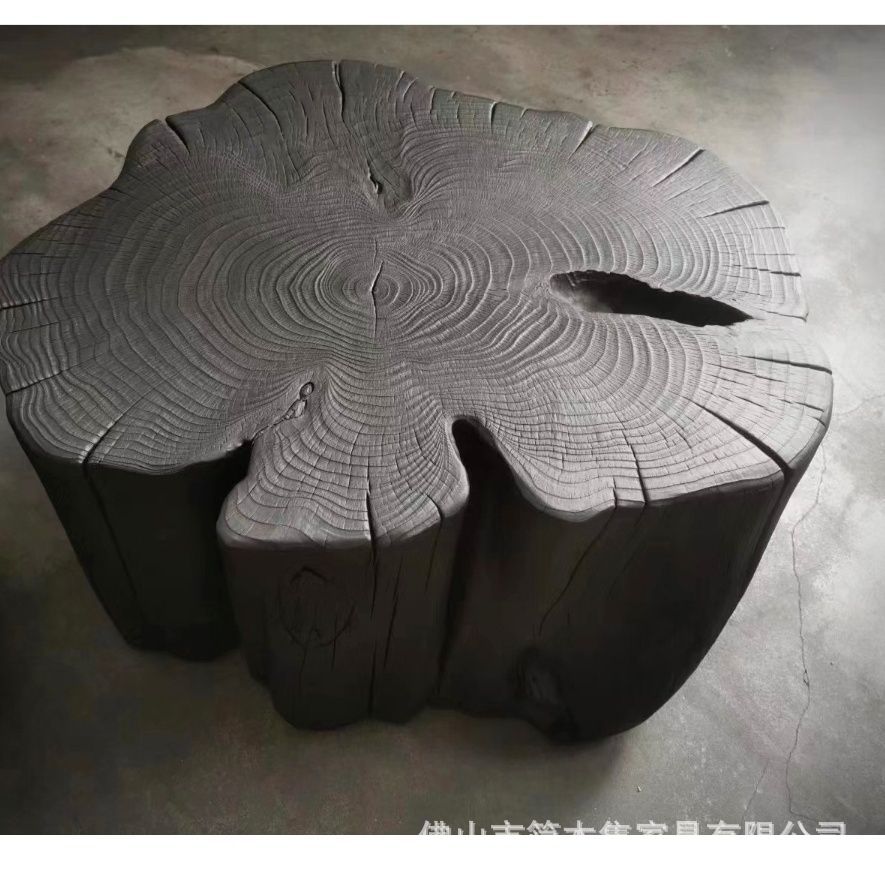 わびさび風炭化木柱黒無垢材木の丸太フラワースタンドベースB&B無垢材木の丸太根彫りスツール