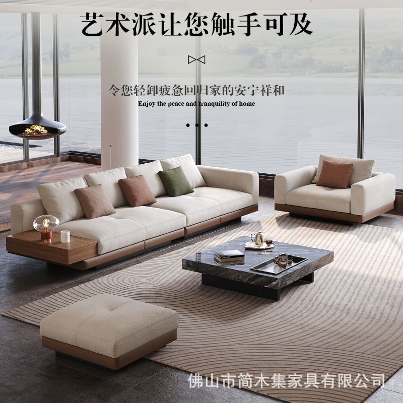 イタリアのコンナリー綿とリネンのソファヨーロッパとアメリカのライトラグジュアリーミニマリストリビングルーム大型フラットフロアゲストハウスレザーソファ