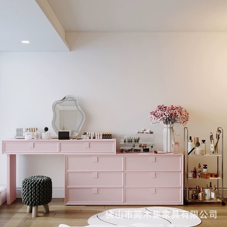 クリームスタイルのモダンでシンプルな収納キャビネット無垢材の化粧キャビネットドレッシングテーブル寝室のベッドサイドコーナーキャビネット伸縮式一体型