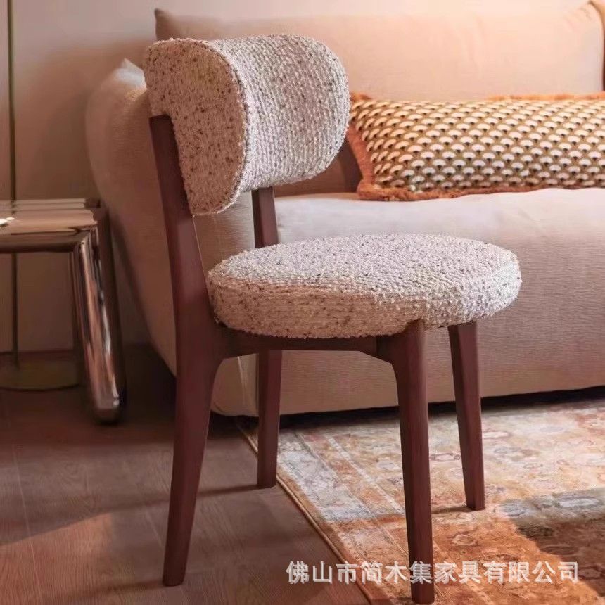 北欧無垢材ダイニングチェアクリームスタイルライト高級ハイエンドリビングルームレストランモダンシンプルメイクチェアユリチェア