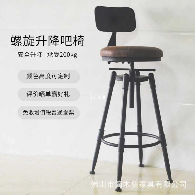 バーチェア、バーチェア、回転昇降椅子、無垢材ハイスツール、鉄製背もたれ、ホームバースツール、モダンでシンプル