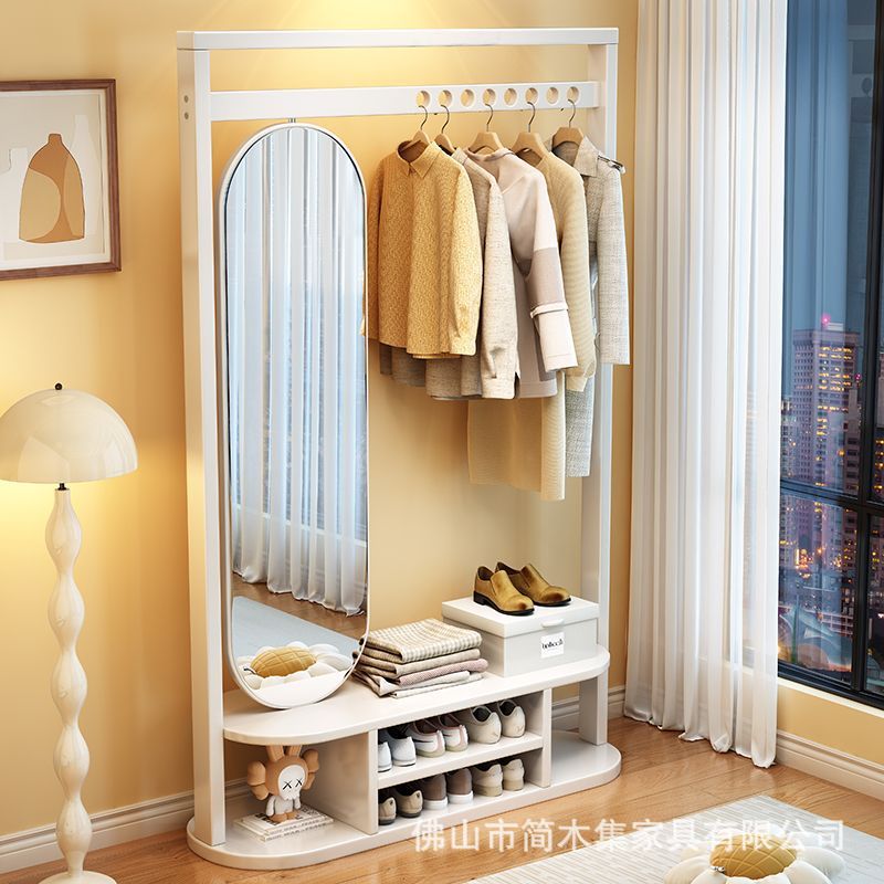 無垢材コートラック、床置き洋服ラック、寝室収納ラック、ホームリビングルーム洋服ラック、ドレッシングミラー、一体型全身鏡