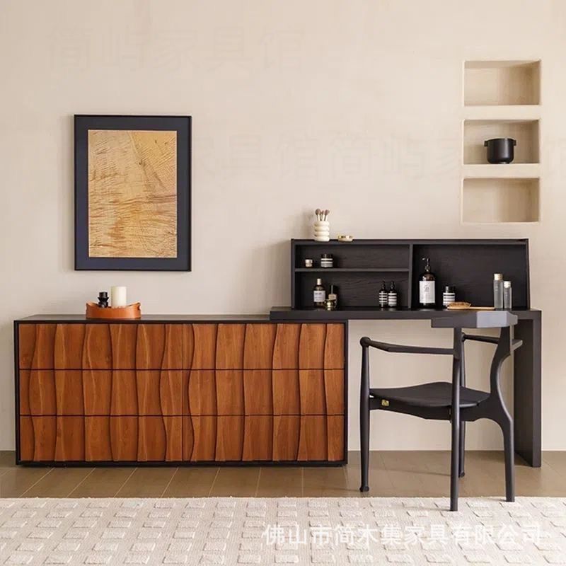 Xishi モダンでシンプルなベッドルームベッドサイドドレッサーチェストウォールナットカラー中古無垢材フレンチレトロダストボックス一体型メイクアップ