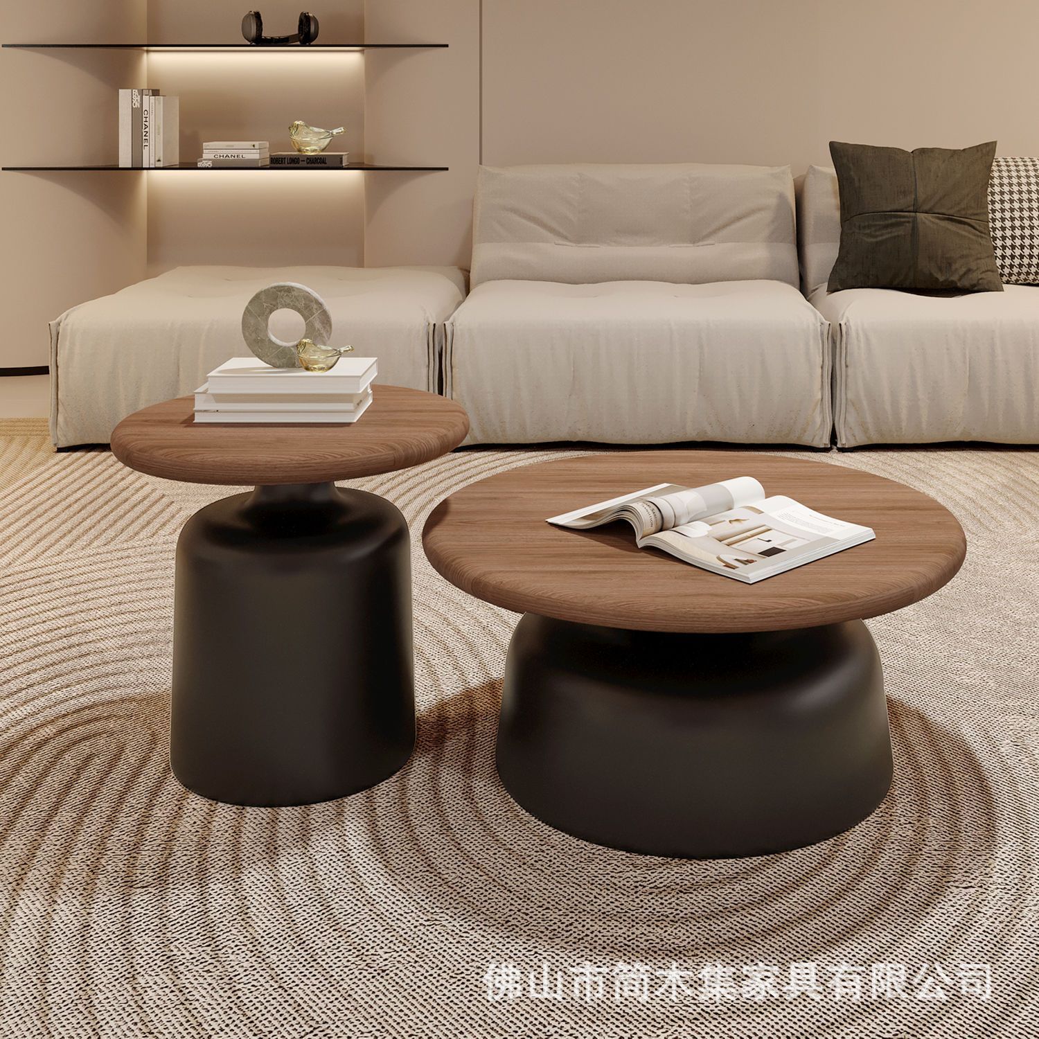 中世スタイルのスレートラウンドコーヒーテーブルリビングルームホームモダンライト高級ハイエンドシンプルなアンティークスタイルウォールナットカラーエスプレッソセット