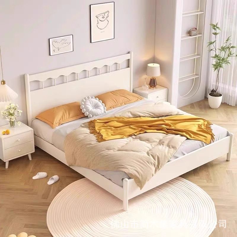 ピアノキーサスペンションベッドモダンシンプルライト高級ログクリームスタイル無垢材ベッド 1.5m マスターベッドルームシングルベッド 1m