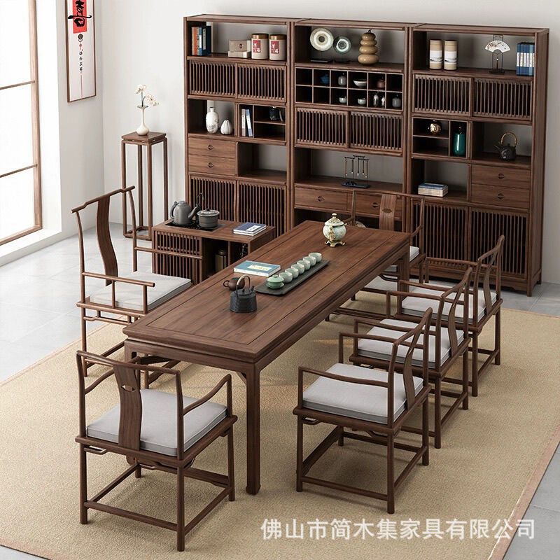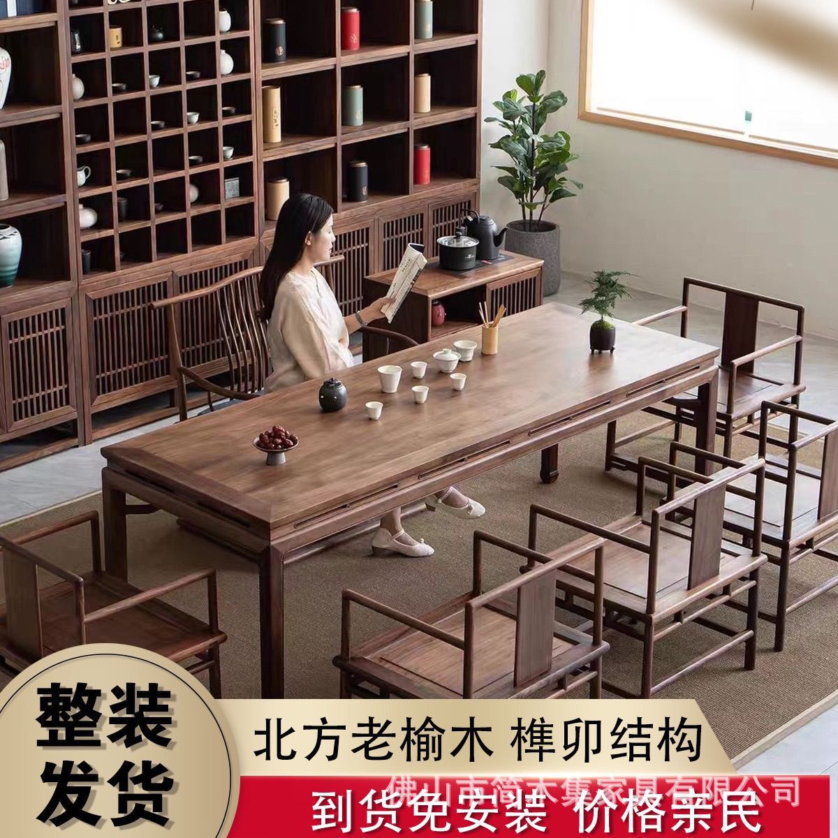 新しい中国風のティーテーブルと椅子、家庭用ティーテーブル、モダンでシンプルなコーヒーテーブルの組み合わせ、古いニレ無垢材の禅オフィス