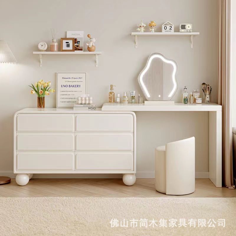 ライトラグジュアリークリームスタイル収納キャビネットモダンシンプル格納式コーナー化粧無垢材ドレッシングテーブルドローバッグテーブル一体型