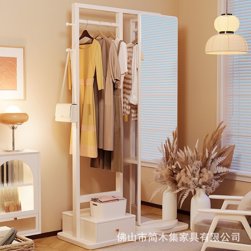 無垢材ドレッシングミラー、全身鏡、家庭用コートラック、寝室用ミラー、回転試着ミラー、洋服ラック、フロアミラー一体型