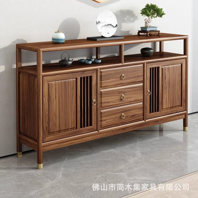 【新中華風サイドボード】玄関キャビネット ワインキャビネット ティーキャビネット 無垢材壁面キャビネット ニレ材収納 ブラックウォールナットカラー