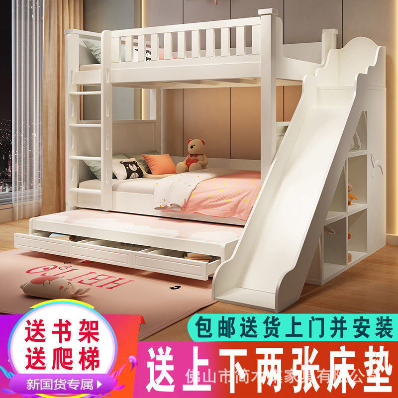 ウッドカラー子供用ベッド、ハイ&ローベッド、シンプルモダンなはしご付きキャビネット、マザーベッドスライド、二段ベッドコンビネーションベッド