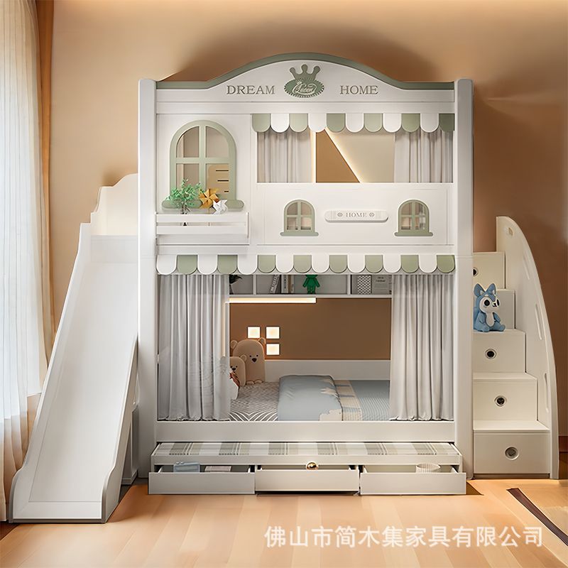 子供用ベッド、高さのあるベッド、スライドベッド、二段ベッド、男の子と女の子、子供用ガードレール、環境に優しいベッド