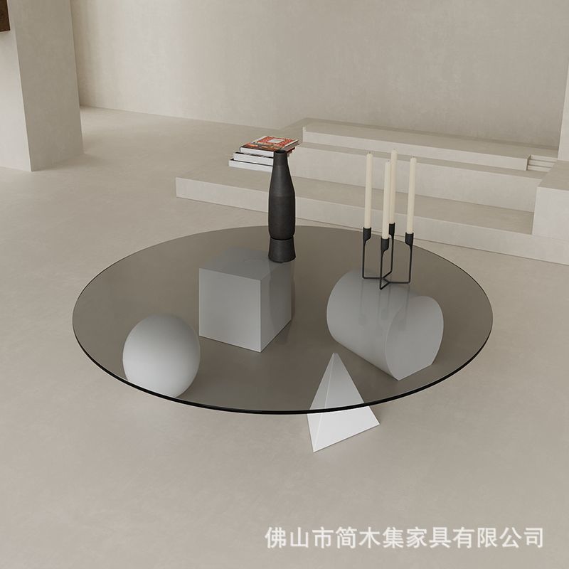 【シンプルで雰囲気のある】クリエイティブライト高級強化ガラスティーテーブルリビングルームラウンドコーヒーテーブル非常にシンプルでモダンなテーブル