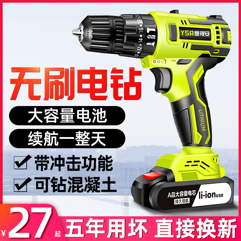 ブラシレスインパクトリチウム電気ドリル充電式懐中電灯ドリル小型電気ドリル家庭用多機能電動ドライバー