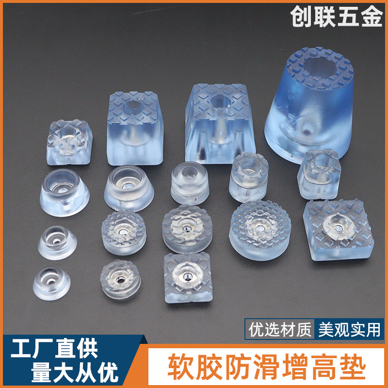 創聯卸売PVCプラスチック製黒色透明脚パッド家具滑り止め脚パッドテーブル椅子高さ調整防湿脚釘