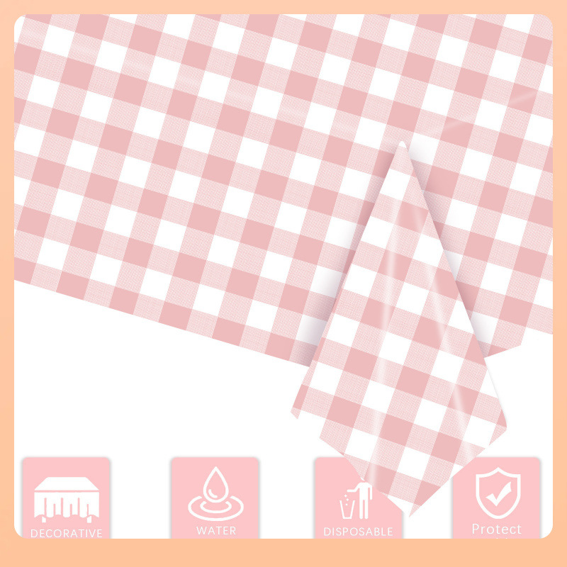 ✅新型の現物の白い格子のテーマのテーブルクロスの性別はパーティーの防水の防油の使い捨て台を明らかにします。
