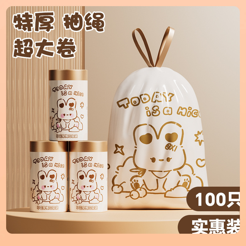 ✅厚いひものゴミ袋の大きい巻きのウサギはかわいいプリントの家庭用の携帯式の自動で口の事務室のプラスチックを引き裂きます。