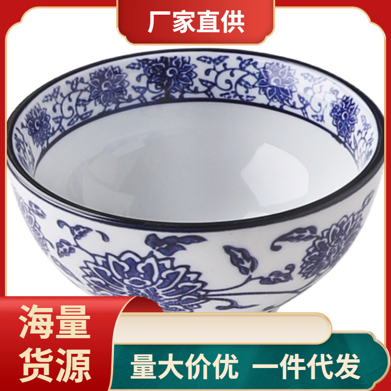 卸売りの食事の碗の業務用の釉薬の下で彩られている中国式の青花の磁器の碗の小さいスープの碗の復古風の牛肉の蘭州のラーメンの伝統